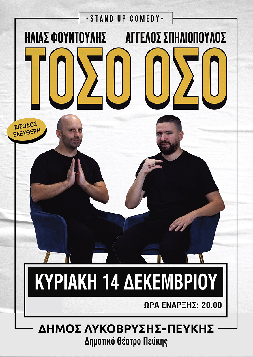 Dec 14 Τόσο Όσο στην Πεύκη 20:00 - 22:00 Δημοτικό Θέατρο Πεύκης Χρυσοστόμου Σμύρνης & Ρήγα Φεραίου, Πεύκη Event Details Get Directions