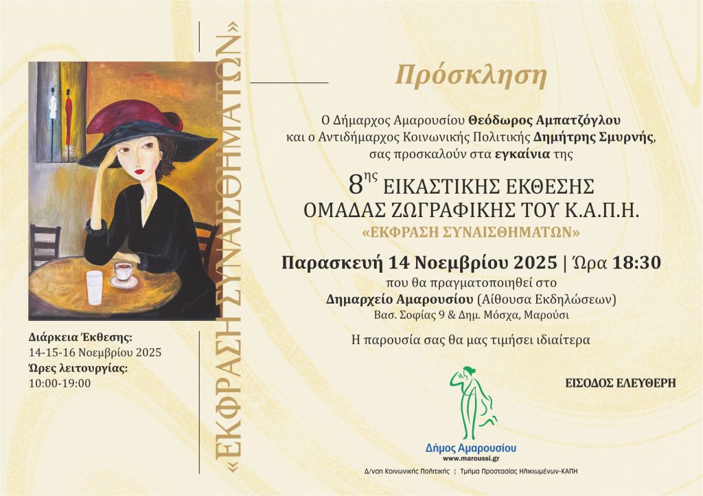 Nov 14 18:30 - 19:30 Έκφραση Συναισθημάτων στο Μαρούσι Δημαρχείο Αμαρουσίου Βασ. Σοφίας 9, Μαρούσι Event Details Get Directions