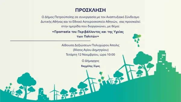 Nov 12 10:00 - 14:00 Προστασία Του Περιβάλλοντος Και Της Υγείας Των Πολιτών Άλσος Αγίου Δημητρίου (Άπολις) Πετρούπολη Άλσος Αγίου Δημητρίου, Πετρούπολη Event Details Get Directions