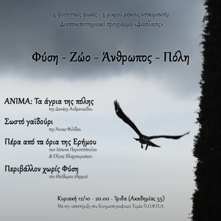 Oct 12 20:00 - 22:00 Φύση Ζώο Άνθρωπος Πόλη στην Ίριδα Κινηματοθέατρο Ίριδα - ΠΟΦΠΑ Ακαδημίας 55 & Ιπποκράτους 15, Αθήνα Event Details Get Directions