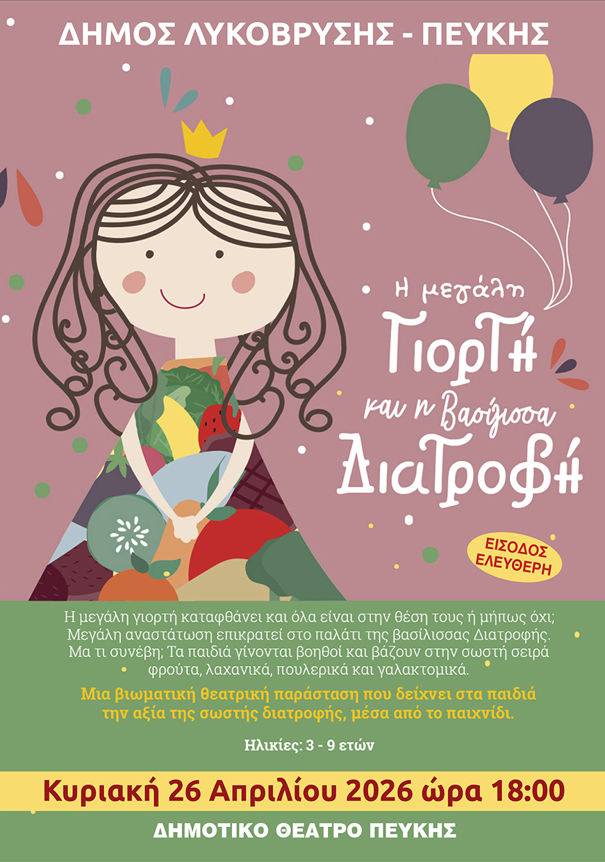 Apr 26 Η μεγάλη Γιορτή και η Βασίλισσα Διατροφή 18:00 - 20:00 Δημοτικό Θέατρο Πεύκης Χρυσοστόμου Σμύρνης & Ρήγα Φεραίου, Πεύκη Event Details Get Directions