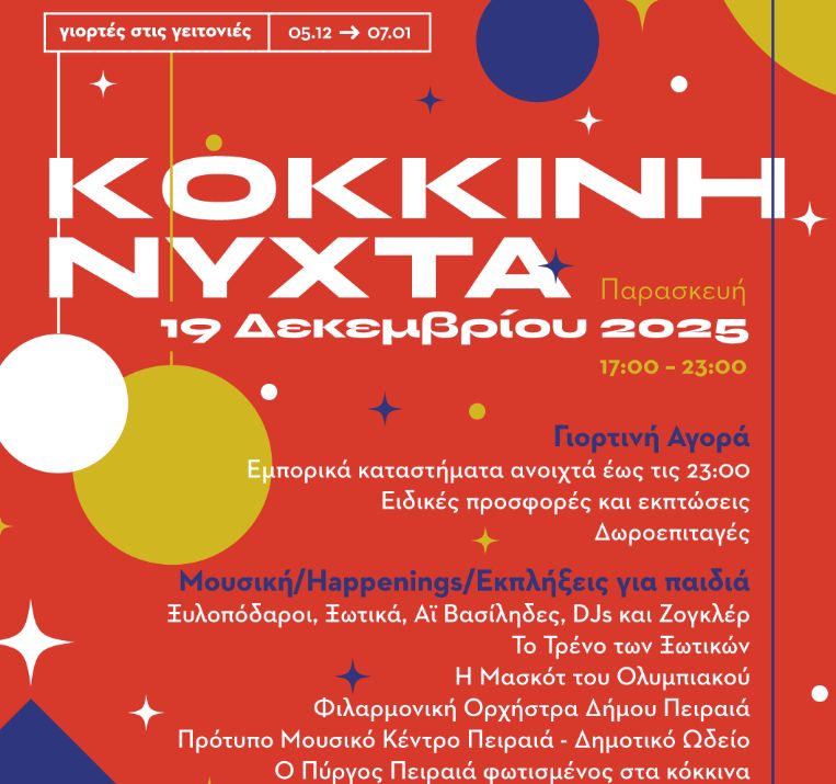 Dec 19 Κόκκινη νύχτα στον Πειραιά 17:00 - 23:00 Δημοτικό Θέατρο Πειραιά Ηρώων Πολυτεχνείου 32, Πειραιάς Event Details Get Directions