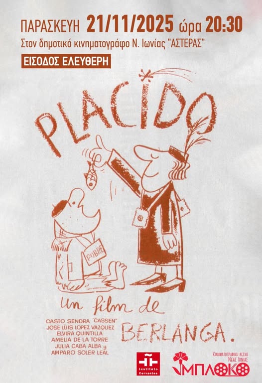 Nov 21 Placido στη Νέα Ιωνία 20:30 - 22:30 Κινηματογράφος Αστέρας Νέα Ιωνία Ασκληπιού 4, Νέα Ιωνία Event Details Get Directions