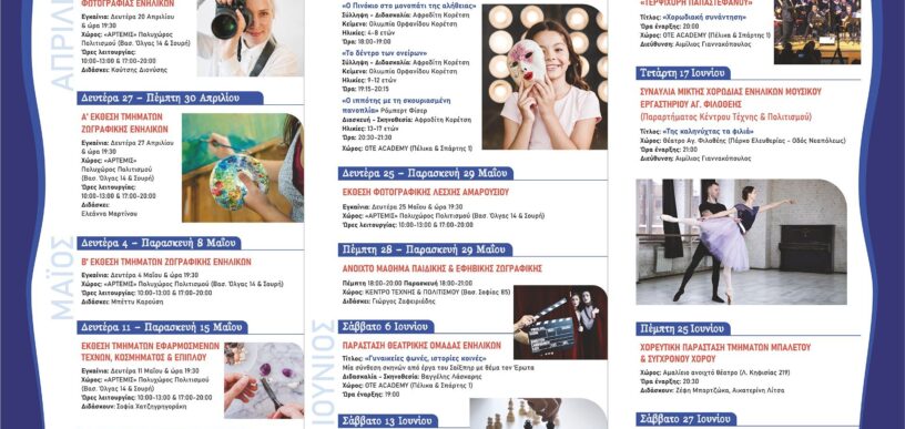 Καλλιτεχνικές Εκδηλώσεις Τμημάτων Δήμου Αμαρουσίου 2026. Ένα πλούσιο πρόγραμμα εκθέσεων, παραστάσεων και δράσεων για όλες τις ηλικίες.